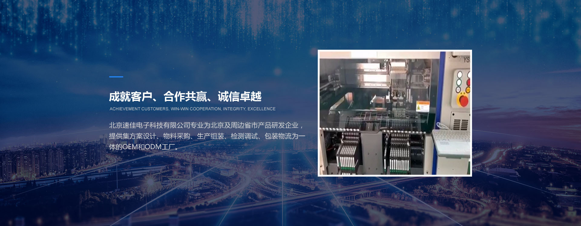北京速佳電子科技有限公司專業(yè)為北京及周邊省市產(chǎn)品研發(fā)企業(yè),提供集方案設(shè)計(jì)、物料采購(gòu)、生產(chǎn)組裝、檢測(cè)調(diào)試、包裝物流為一體的OEM和ODM工廠。